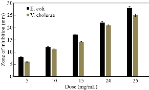 Fig. 6 Antibacterial activity of CaO nanoparticles against E. coli and V. cholerae